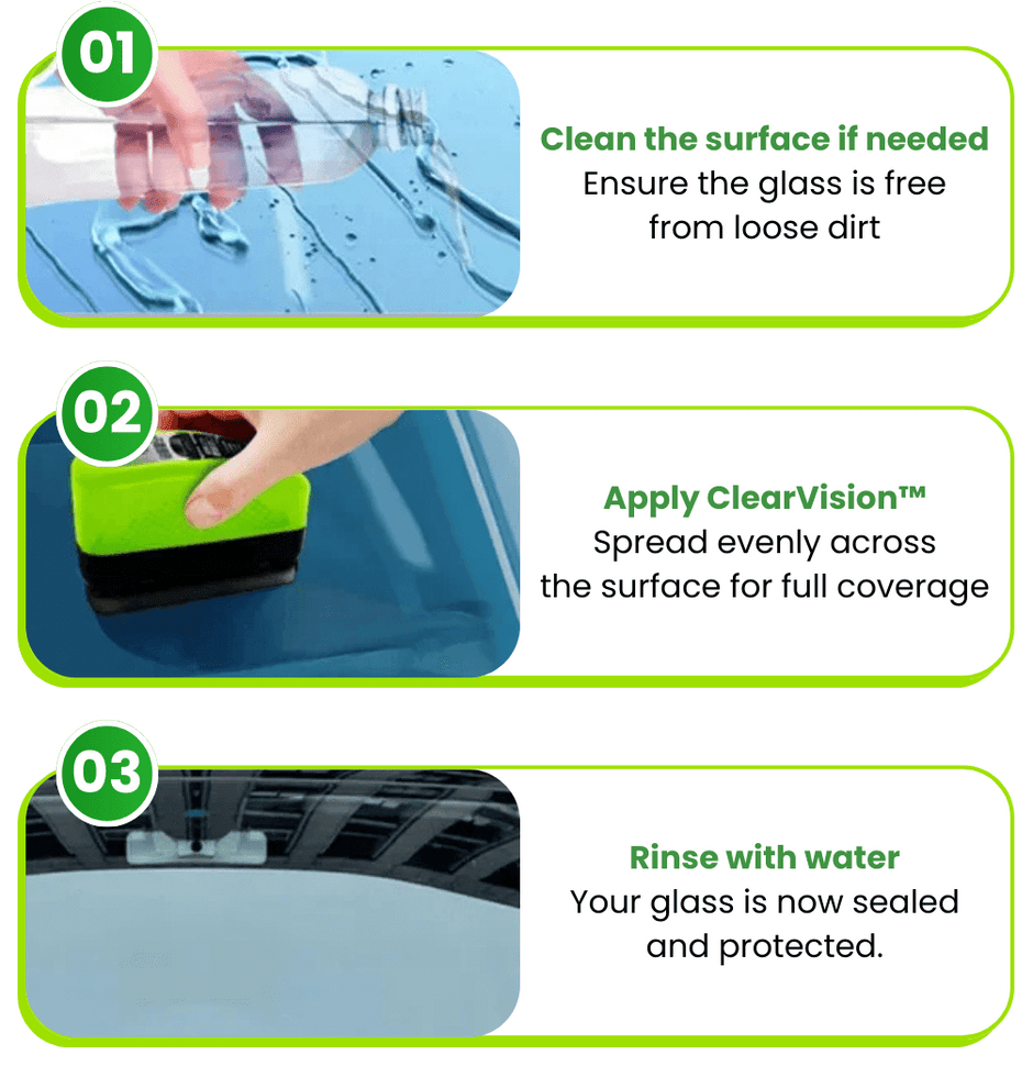 Safe Driving. Repels water to improve driving visibility in the rain, whether it is the windshield or the rearview mirrors.